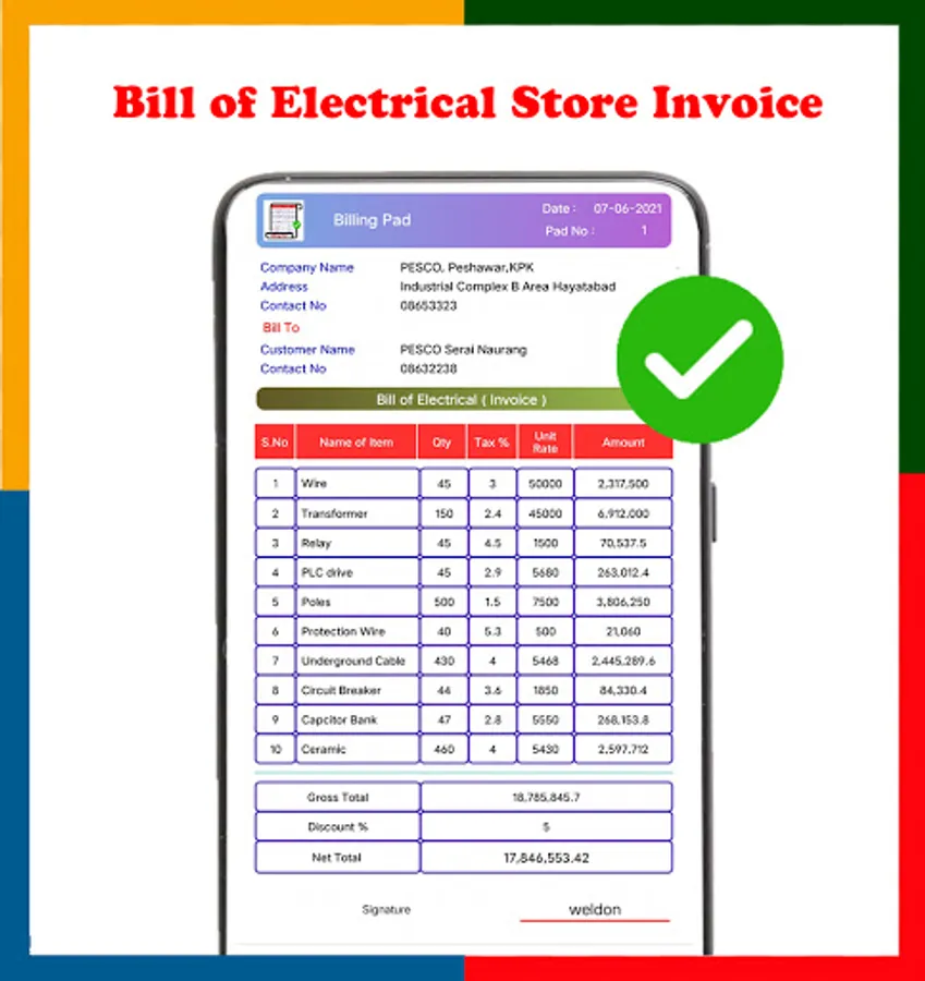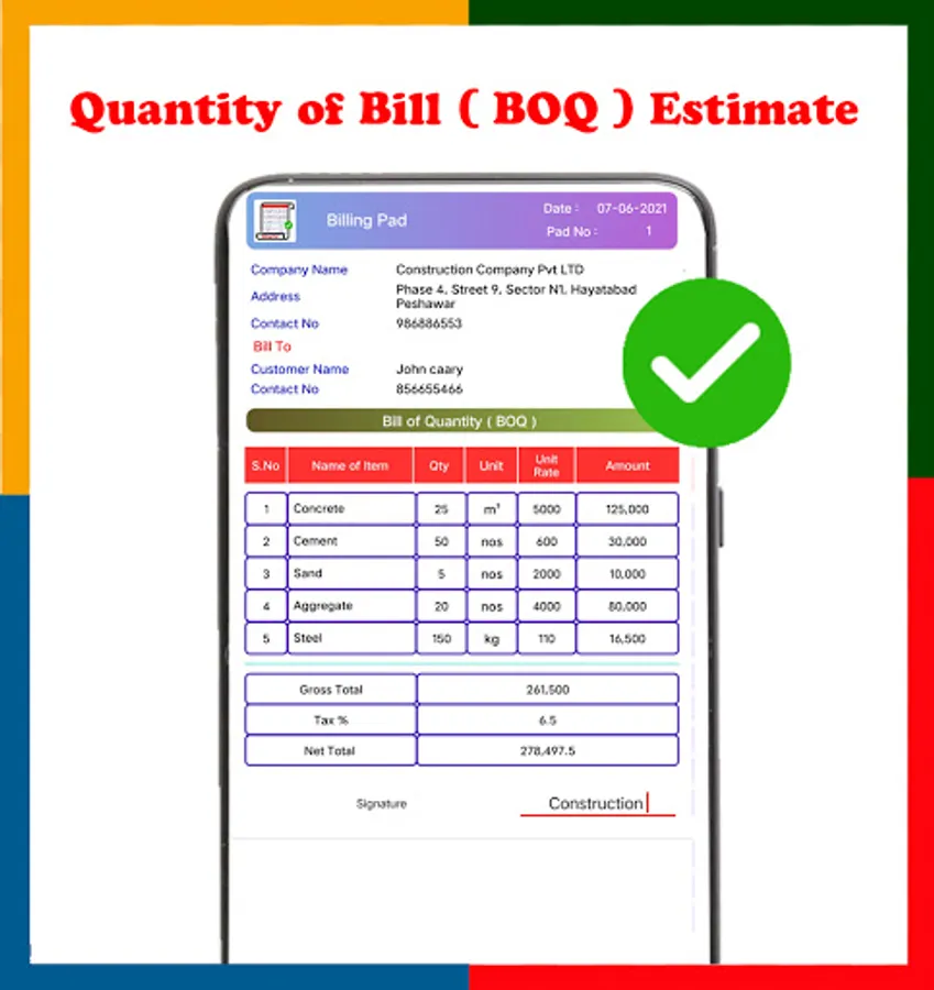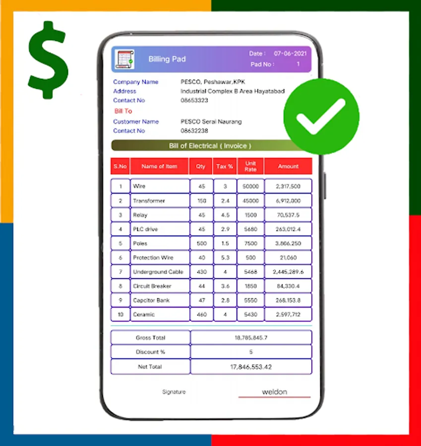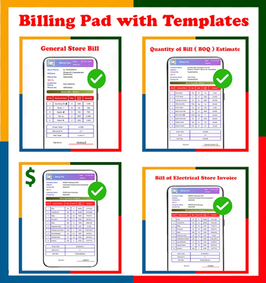 Billing pad App is free, offline, easy, fast and very useful for general store, medical store, shopkeeper, accounting and bill of quantity (BOQ), to generate receipts and invoices.