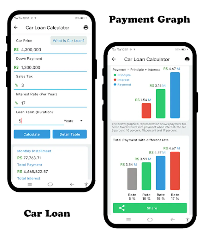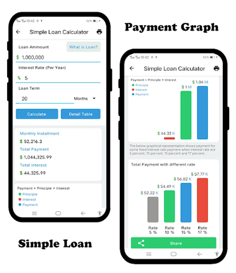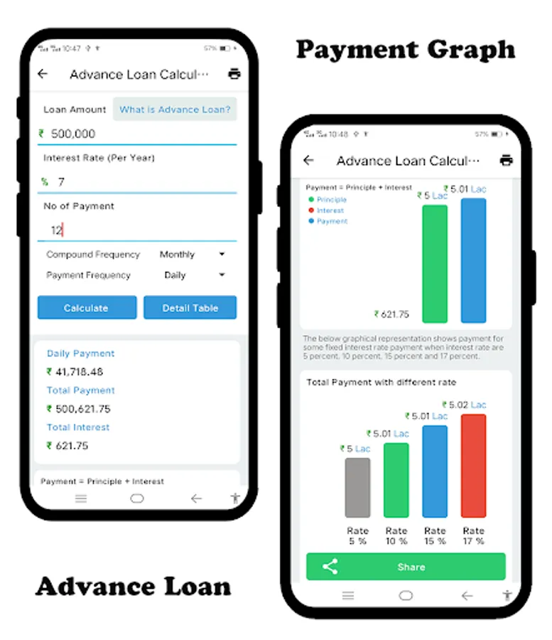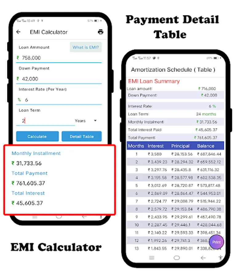 ● Share computed PDF results & Amortization schedule with anyone for EMI & loan planning.