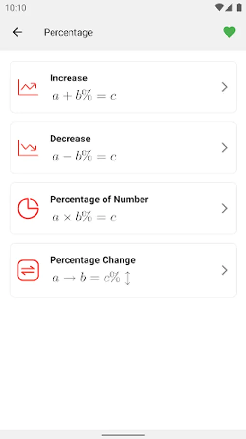 • Percentage Change: a → b = c%↑↓