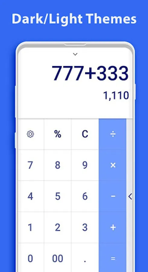All necessary basic calculator functions (percentage included) Two stylish themes (dark and light) that will make your Calculator looks more convenient Large clear UI Intuitive UX Works on tablets + mobile devices