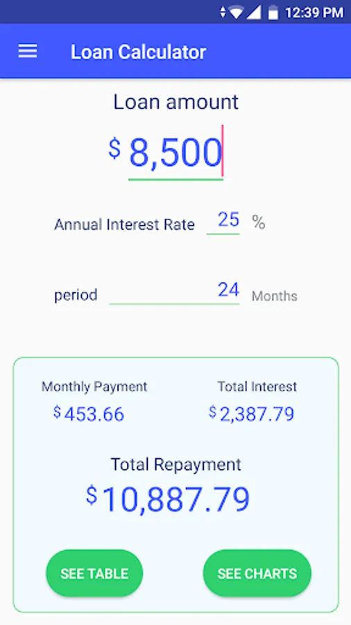Simulate and calculate your loans will be super simple with "Loan Calculator", you can calculate your mortgage, vehicular, student loans or of any kind. This credit calculator will help you to always stay organized in your economy and know precisely how much you are really paying for that loan over time, in your preferred currency and in percentages. All this organized in an intuitive and friendly interface that will make you feel safe and in total control of your finances.
