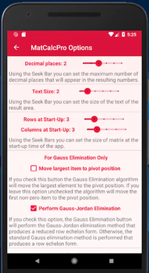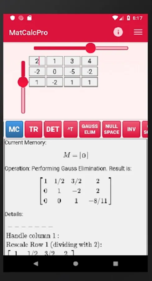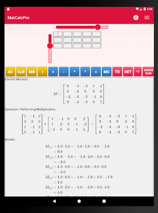 The app is very easy to use and it provides all details of the respective computations. You can input the elements of the matrix just by tapping on the respective cell and you can move to the next cell using the "next" key. You don't have to enter the zero values. Just leave the respective cell empty.