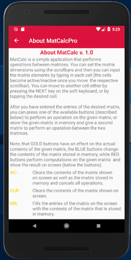 Matrix Calculator is a simple app which you can use to perform all basic matrix operations including: