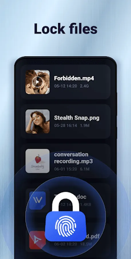 - Lock all formats of files, JPG, GIF, DOC, PDF, M4A, MP4, MP3, RAW, etc.