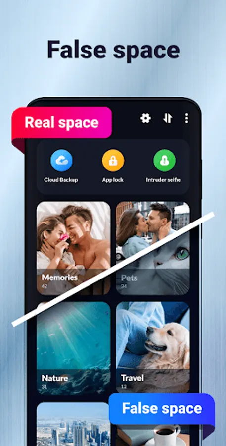 You can create different fake spaces by setting different fake passwords to prevent others from seeing your data in your real vault.