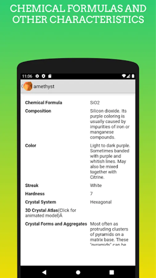 Discover the fascinating world of minerals with our comprehensive and interactive mobile app! With detailed information, vivid images, and engaging quizzes, this is the ultimate resource for mineral enthusiasts, geology students, or anyone curious about the Earth's treasures.