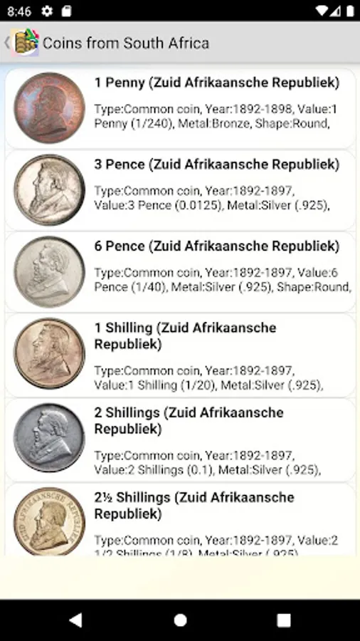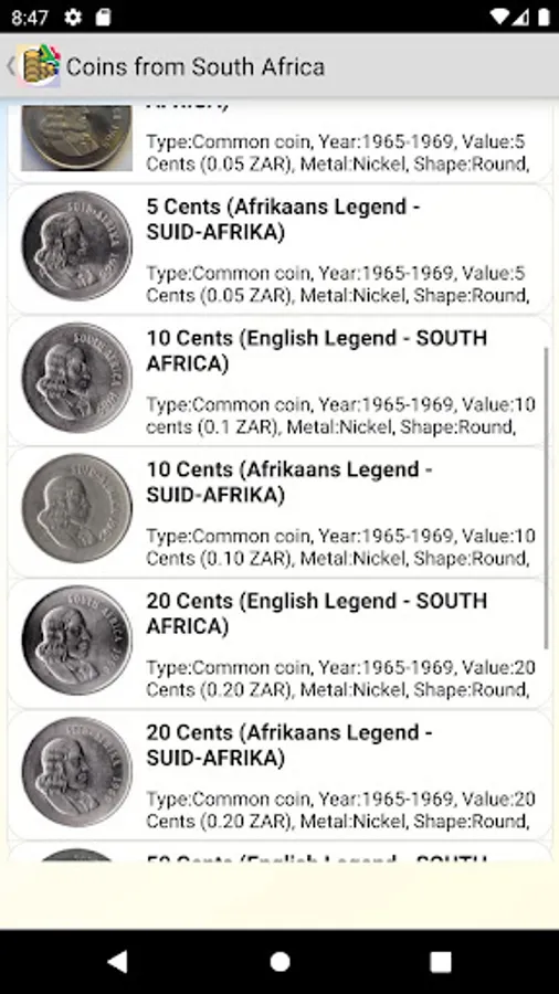 Coins of South Africa - numismatic catalog. All coins from South Africa, presented with pictures, descriptions and more useful information: metal, size, weight, date, mintage.