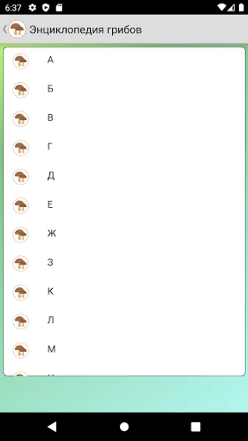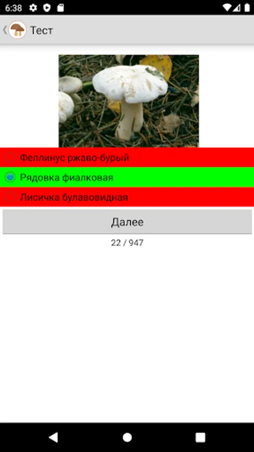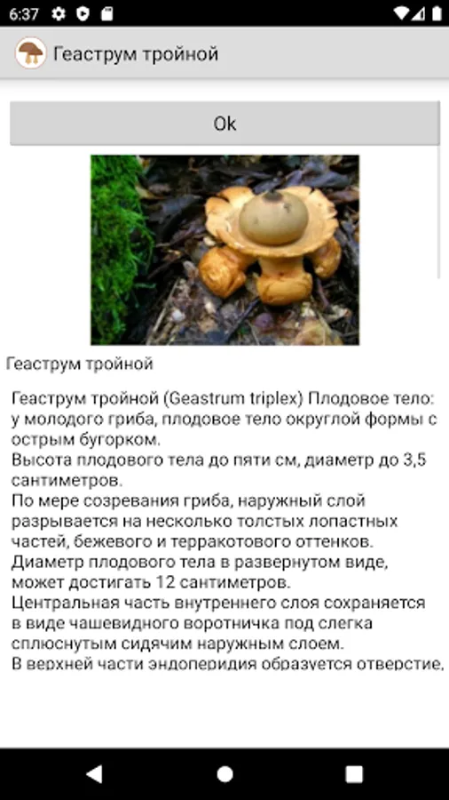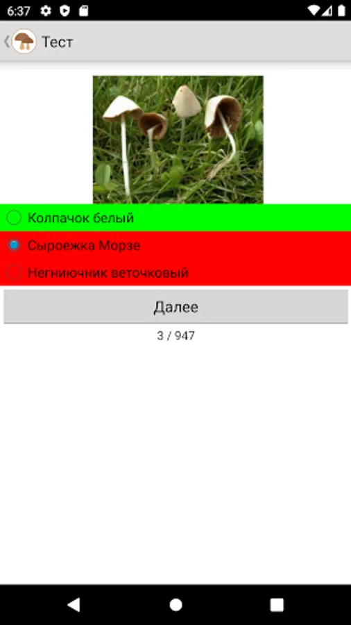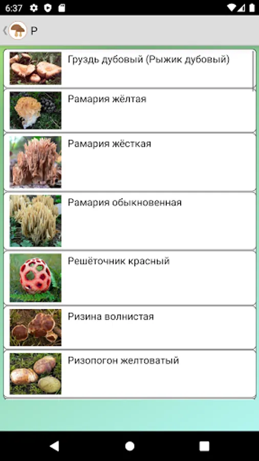 All the names of mushrooms are alphabetical, there is a convenient search and, of course, a simple quiz to test your knowledge.