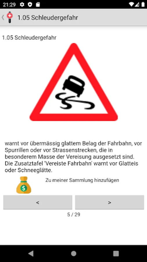 With a simple quiz you can add road signs to improve and check your knowledge of Swiss road traffic rules.