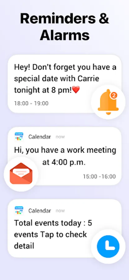 ⏰ Daily calendar with reminders and alarms