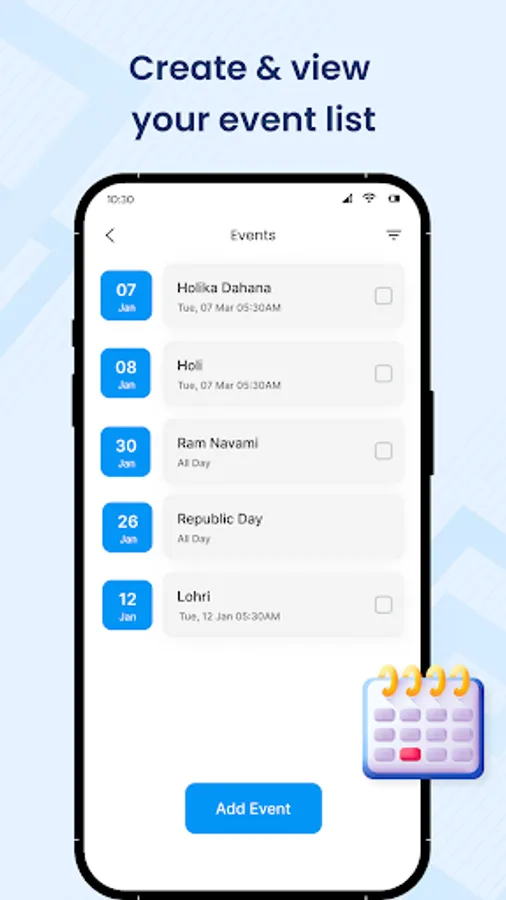 🔔 Notification Flexible Reminders - Choose when you want to be notified, whether it's minutes, hours, or even days before the event.