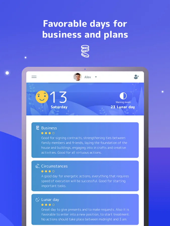 π₯ Daily horoscope will help you plan affairs and trips, and choose the best day for them. It also takes care of your health, which affects everyday life, business activities and communication. You'll receive daily advice for business, health and astrological descriptions of external circumstances, as well as advice for a lunar day.