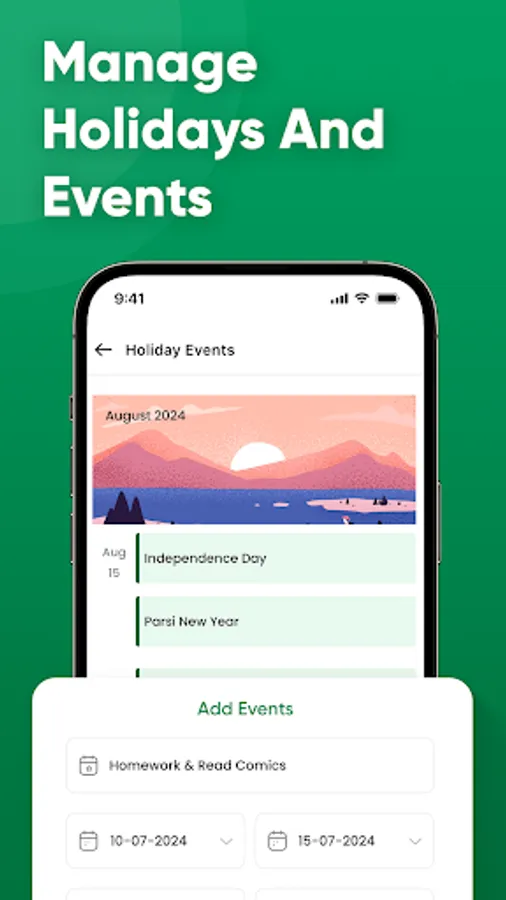 π Holiday Events: Automatically track and view holidays. Our app comes preloaded with national holidays, so you never miss an important date.