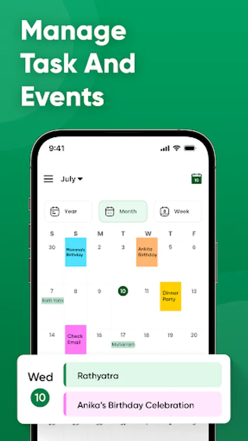 π Month View: Visualize your entire month with our easy-to-navigate month view. Perfect for long-term planning and tracking important dates.