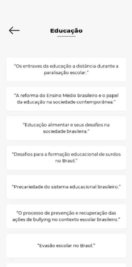 Our application offers a rich bank of carefully chosen topics for you to train and seek the long-awaited NOTE 1000 in the ENEM newsroom.