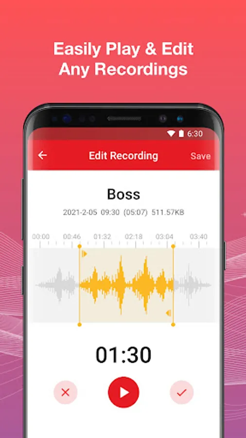 ✔ Edit, delete, backup, playback, share the voice recordings through social apps