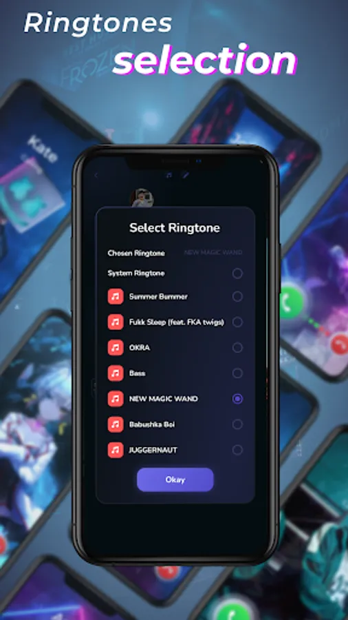 🌟 Ringtones settings: choose a ringtone from the list and set it with the call theme.