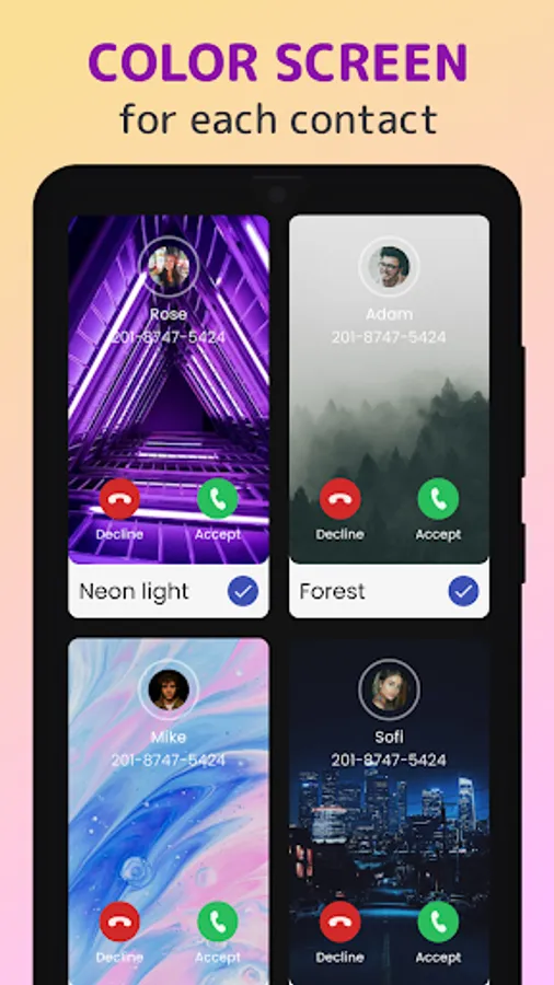 6. For those people who are bored with excessive creative solutions for smartphones, a color screen on a call is ideal. Agree, standard dark tones do not attract all modern people in the era of creativity.
