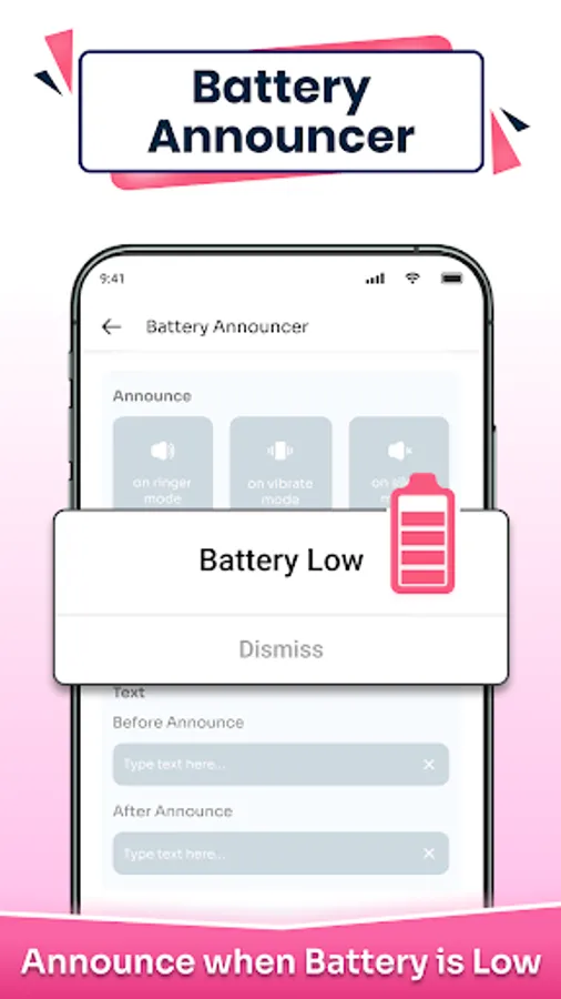 Announcer for WhatsApp has a battery voice alert that gives you a pop up notification. Notifier keeps you updated about the usage of battery in your smart phone, so that you can charge your cell phone before it dies.