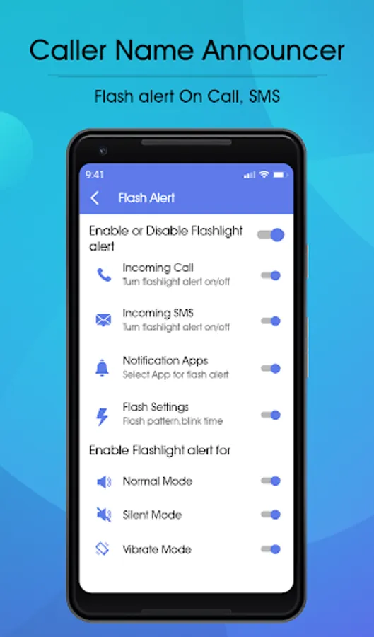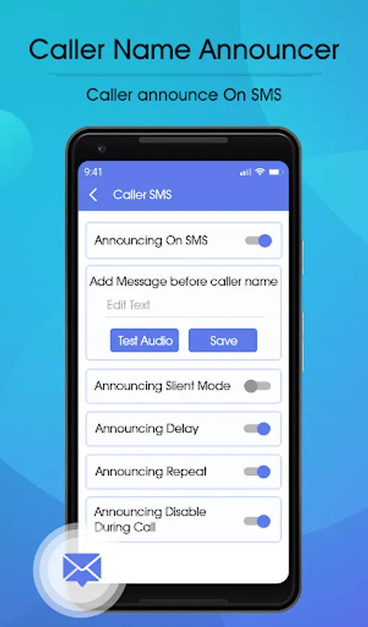 - Enable/disable incoming caller name announcer any time.