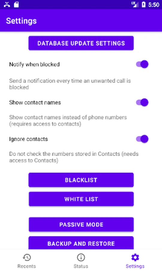 Unlike other blocker apps, Call Filter does not require access to your contacts. It is easy to use and stable in operation.