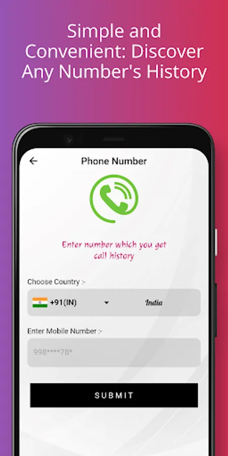 it helps you to find any person's call data and make your work easy also This app helps you for manage records of your data.