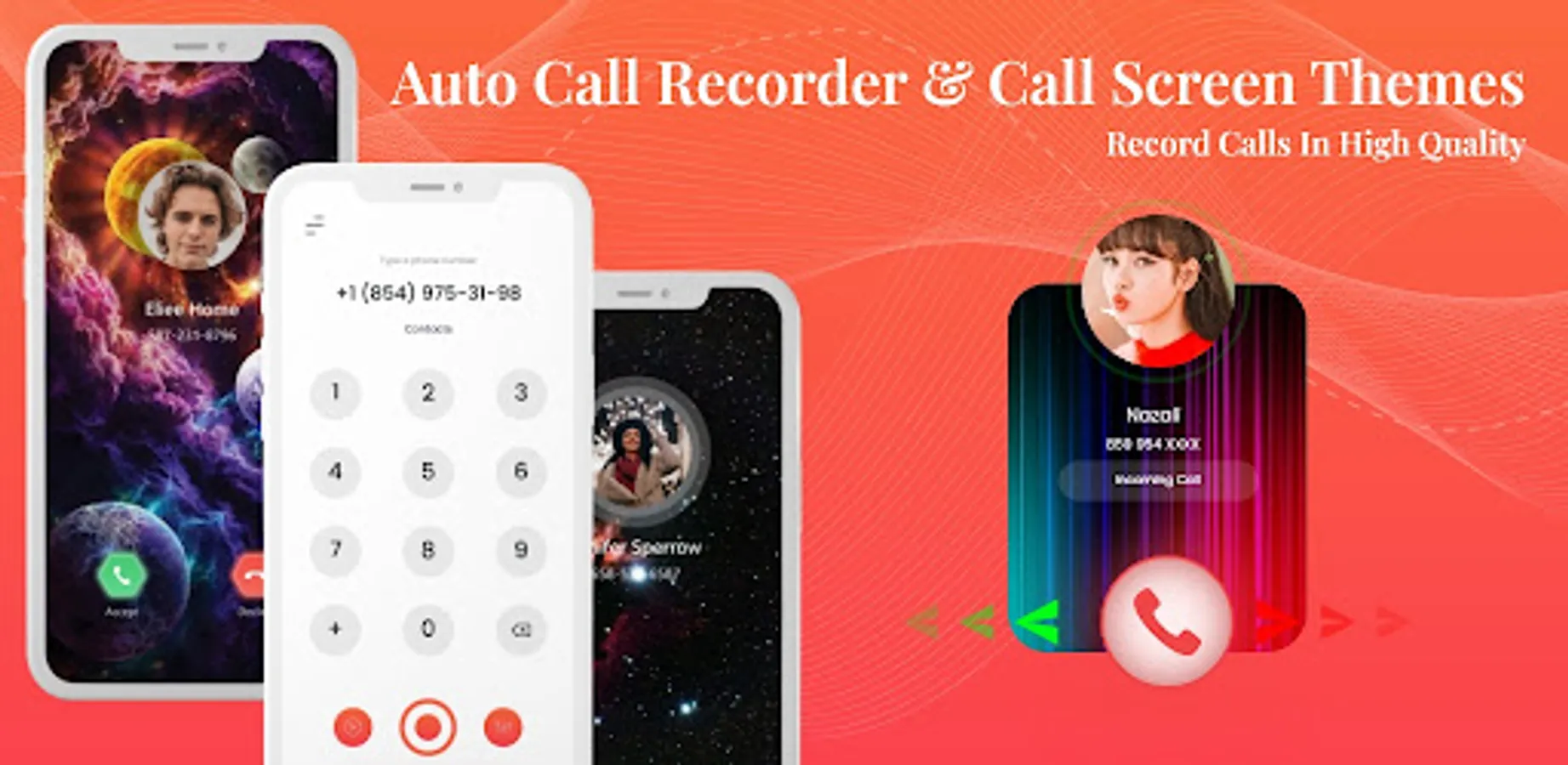 Make your incoming calls Look cool with Call Theme Effect, Flash Effect & Color Call Screen, Record your call automatically.