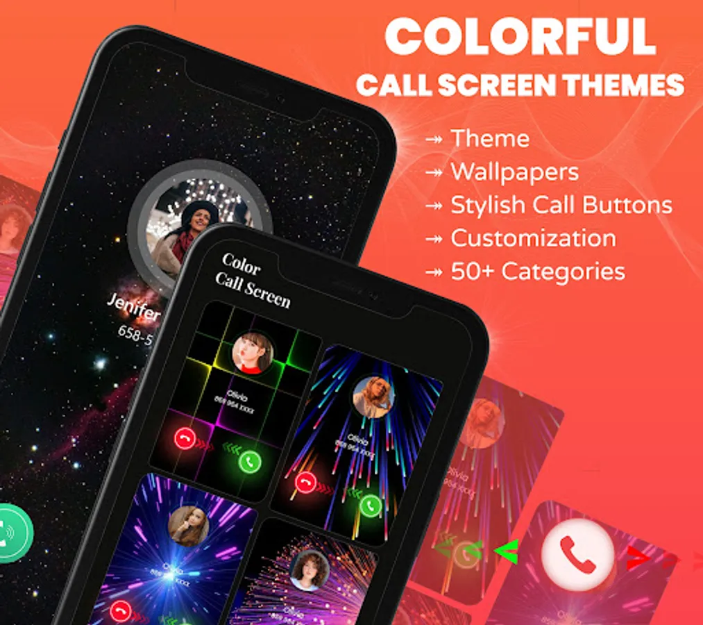 Color Call Screen & Call Themes provides various beautiful, colorful caller screen themes with live wallpapers and live animated wallpaper.