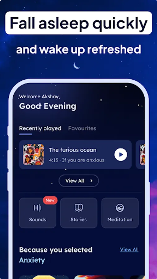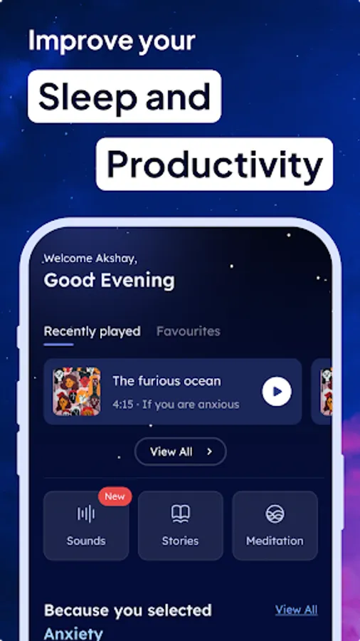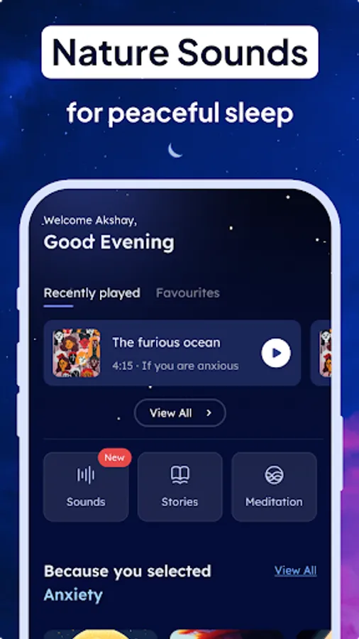 User-Friendly Experience: Navigate effortlessly through our features, including sleep tracker, meditation sessions, and personalized sleep therapy, all within a welcoming platform.
