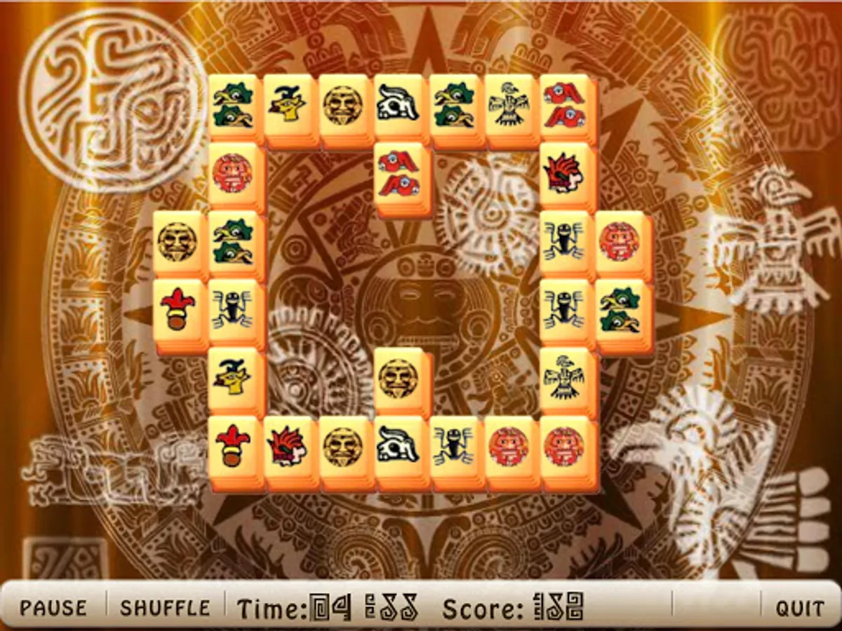 Addictive variation of ancient game mahjong. The archaeologists have discovered mahjong tiles near Tenochtitlan and now you have a possibility to play the Aztec variation of the ancient Chinese patience game Mahjong. Click at the identical unlocked items to delete them. The item is unlocked when its two adjacent sides are opened. You win when all items are deleted.