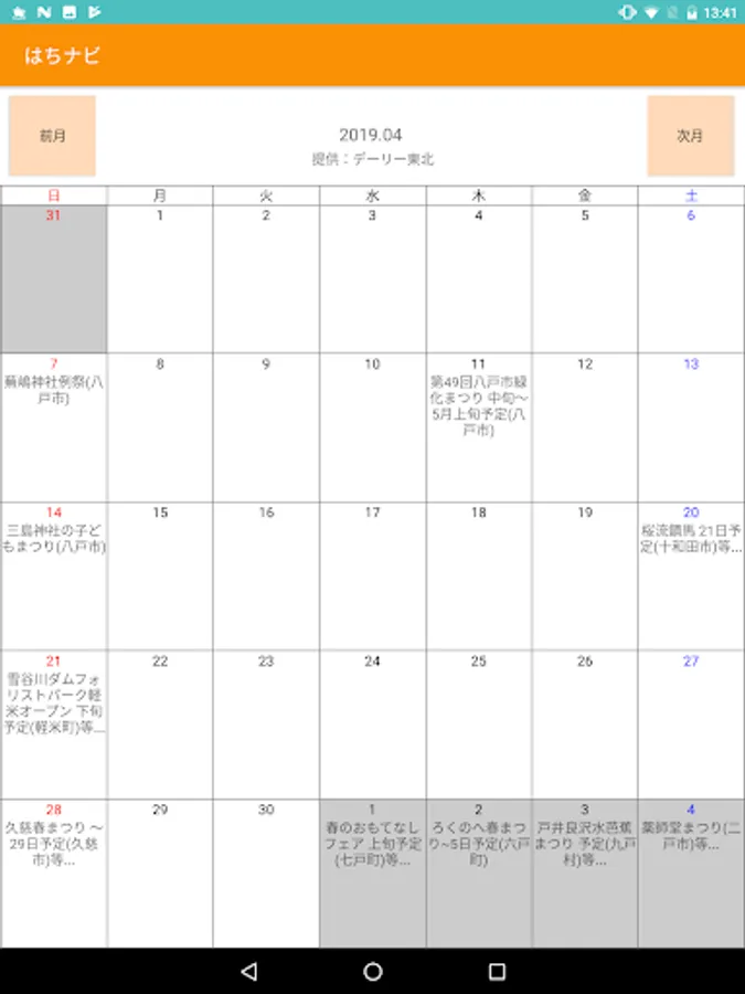 八戸周辺のイベントを一目に見れるカレンダー機能も搭載!