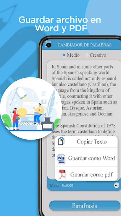 To use this amazing app from (https://cambiadordepalabras.com), you just need to install it from the Play Store. This Android app is absolutely free to install and has unlimited usage.