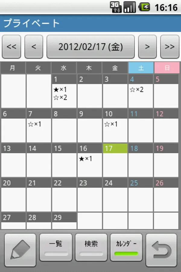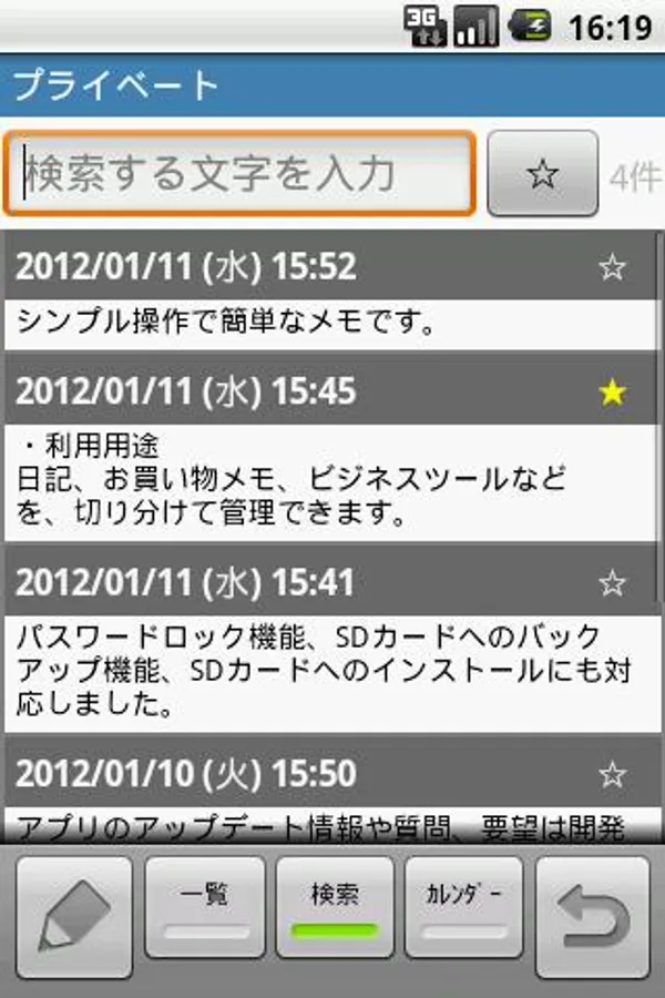 ・日別、全文検索、入力日時、修正日時、お気に入り、から検索し、全文リスト表示