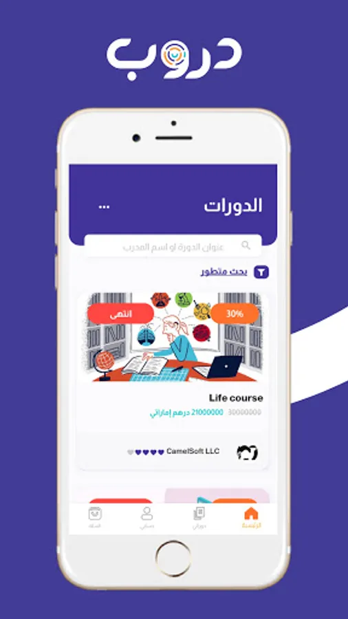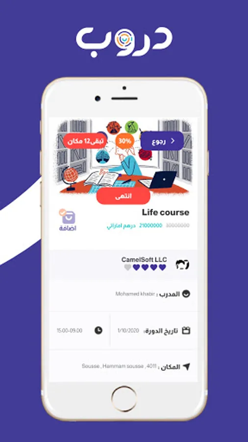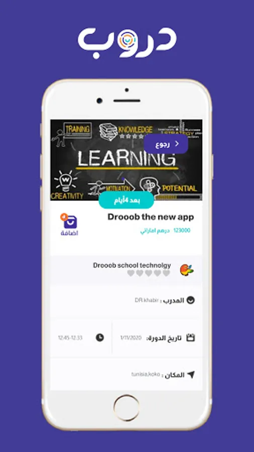 Doroob application is the first and unique application that displays courses in the Arab world in various fields and monitors them for you with love and pleasure to make your experience enjoyable and easy