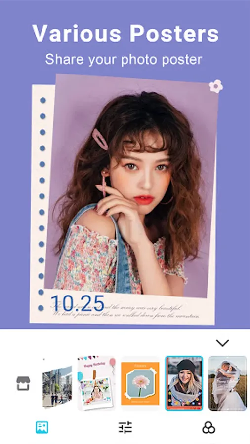 Feeling bored with most beauty cameras and photo editors nowadays? Since you found our Beauty Camera, you must try this camera app and be surprised by the powerful and interesting shooting and editing methods! Camera filters, photo effects, collage, poster maker, stickers, smudge, and more.