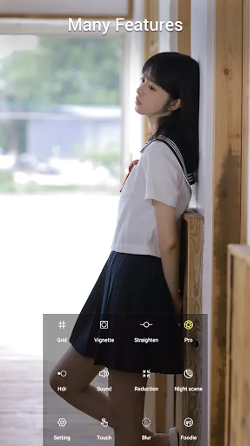 - Pro mode: Scene modes, ISO, White balance, Exposure adjustment, and etc.