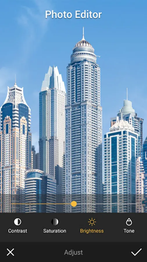 - S20 photo editor support many photo adjustment, such as contrast, saturation, brightness, tone, vignette and etc.