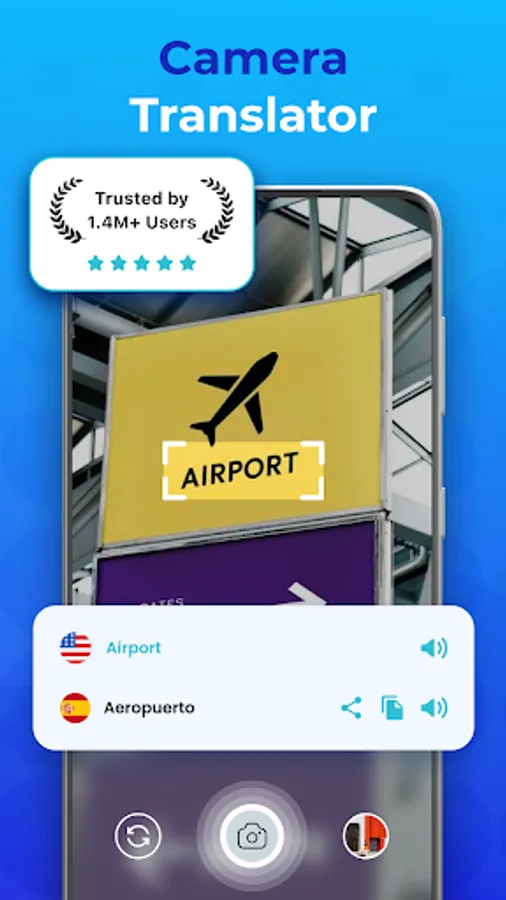 ✅ Translate camera - This function enables users to use their device's camera in real-time to scan and translate text from the environment. Users can simply point their camera at signs or menus and the app will overlay the translated text in real-time, making it easy to understand the meaning without typing or taking a photo.