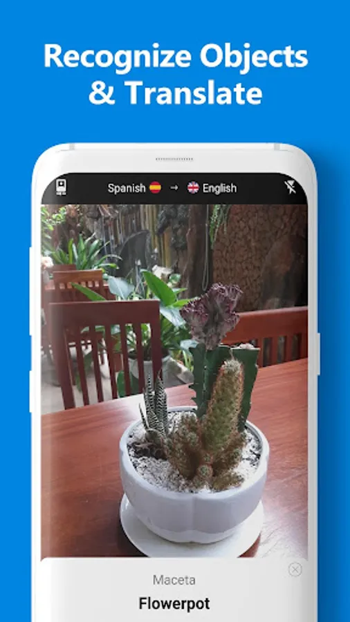 Take a photo or choose from your gallery. The app will recognize the objects and translate them into any language.