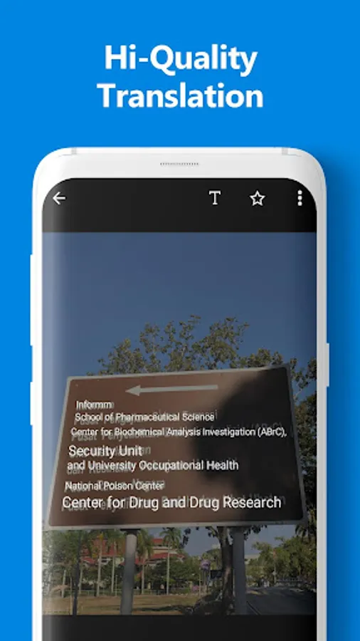 - Camera Translator displays the translated text right on the original one. It's very easy to understand the meaning of the text on the image.