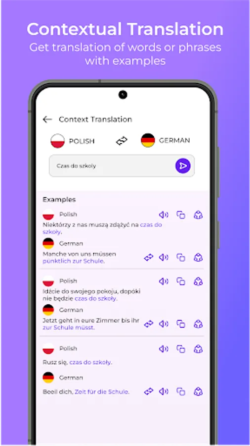 In our AnyTranslate app, you can not only translate text but also learn the basics of any language! Just select the Learn section and start learning the most popular phrases in any language of the world you choose.