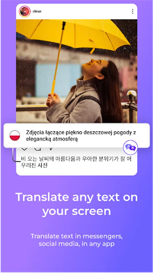Want to chat with someone who doesn't speak your language? Just turn on the chat translator function and both talk in your native language, and Anytranslate will translate the text in the language of the interlocutor into your native language for you and vice versa for your interlocutor.