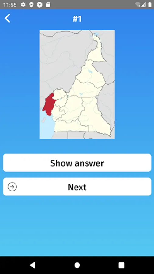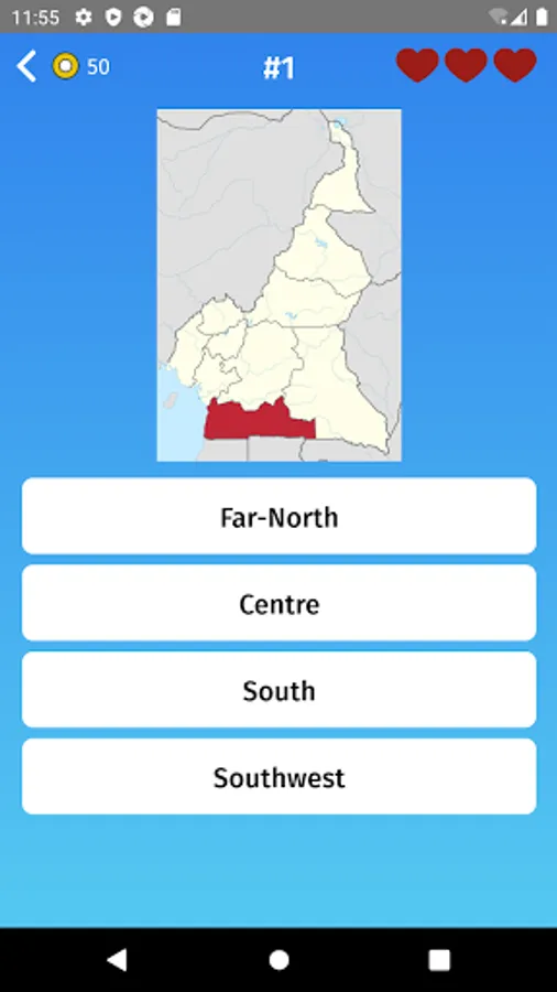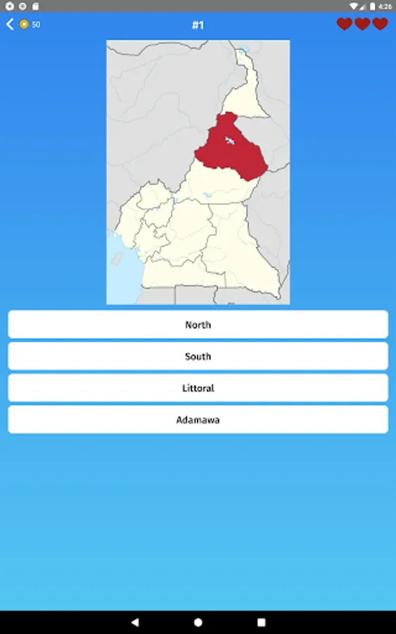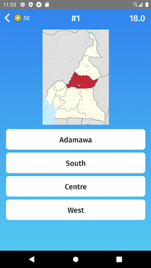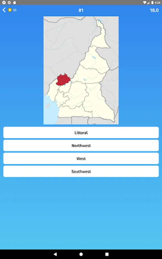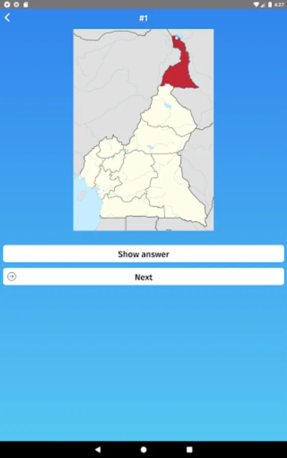 - Multiple choice: guess the provinces of Cameroon, by selecting one of the variants.