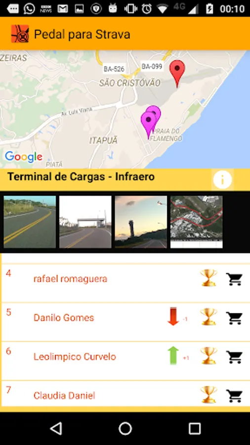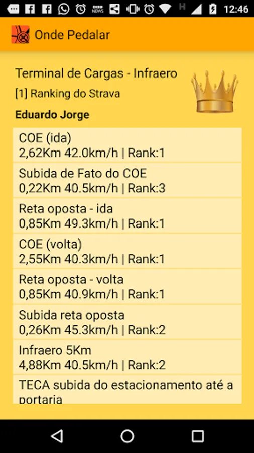 This application enhances your records made in strava because you can see your ranking of a circuit (set of segments);