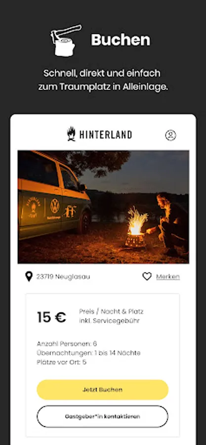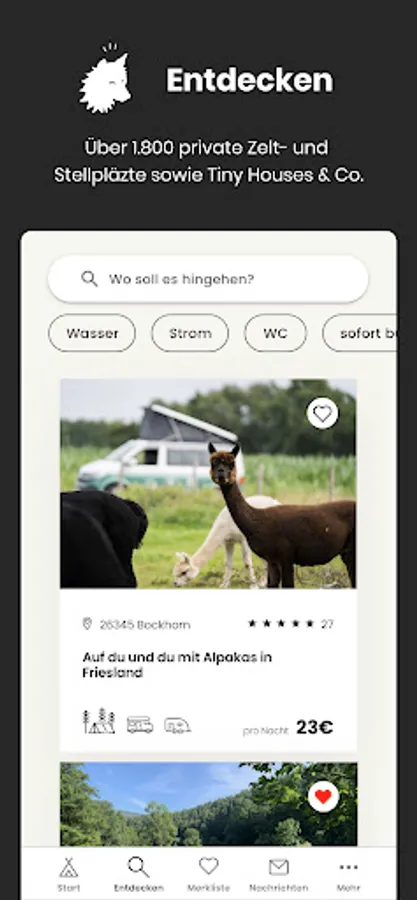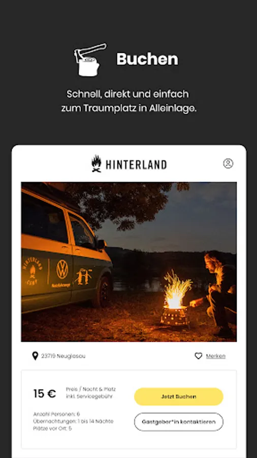 In the Hinterland app, discover the loveliest campsites and pitches as well as Tiny Houses and Co. in Europe for your next outdoor adventure - always far away from the crowds and in the middle of nature.