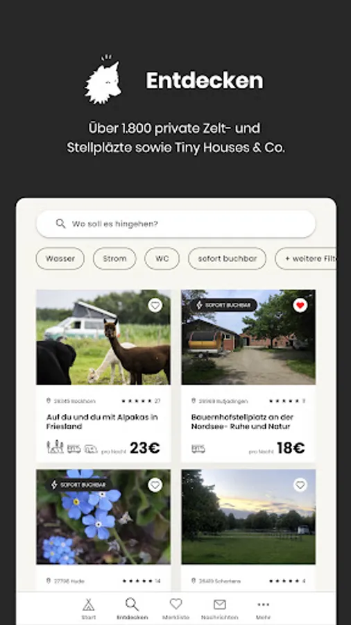 Whether on lakes and rivers, in the middle of vines and meadow orchards or on alpaca farms and farms - book your camp with just a few clicks with our friendly hosts, who look forward to your visit!