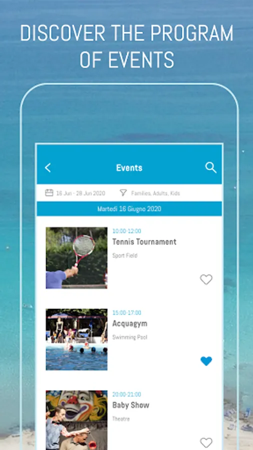 The whole world of Baia di Gallipoli in an app full of features for your holidays. If you have never been to Baia di Gallipoli Camping Resort, download the app now to discover all the services and events we organize. If you are already our guest, access your private area, manage your reservations and book events with a few clicks, activate notifications and stay updated during your holidays. Stay with us, download myBaiaGallipoli!