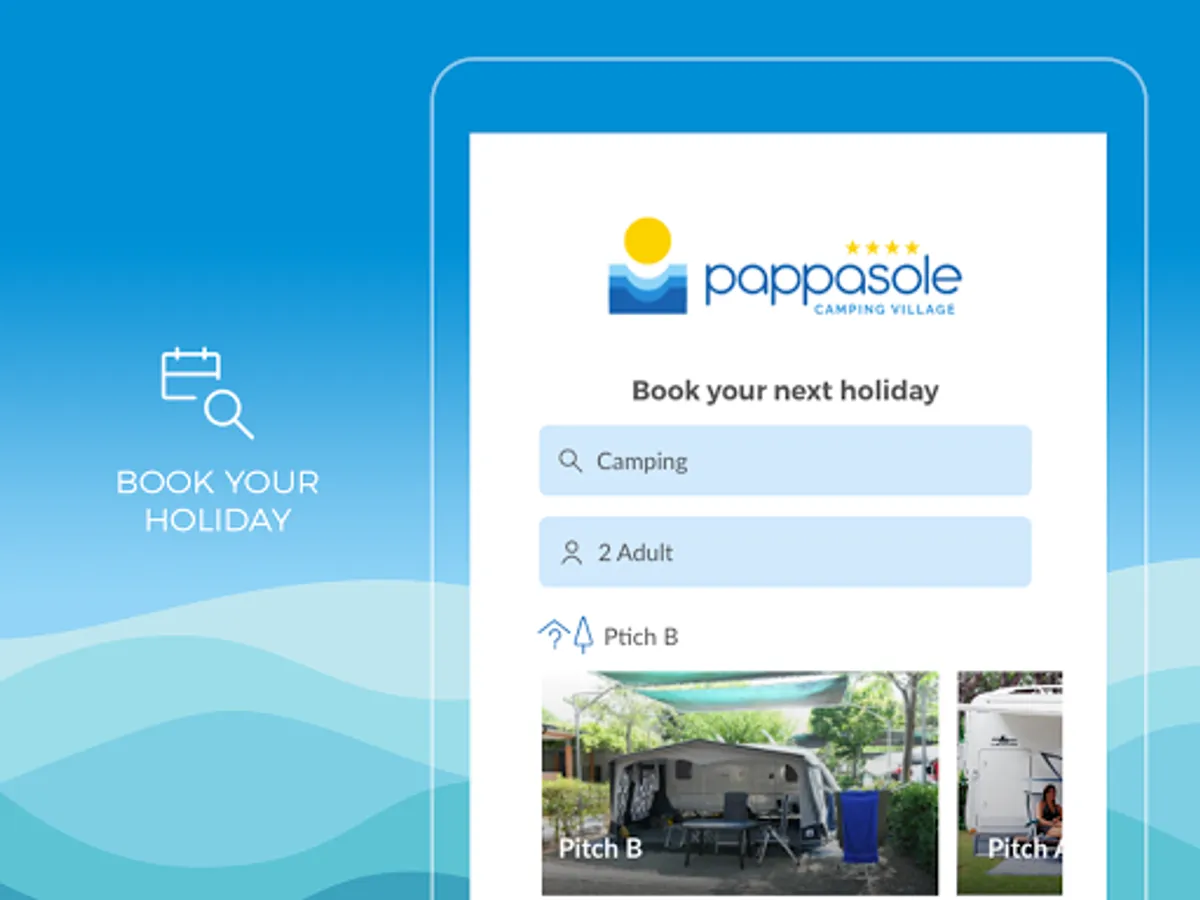 The Pappasole world all in a feature-rich app for your holiday. If you've never been to Camping Village Pappasole, download the App now to discover all the services, the events we organize and book your stay with online booking. If instead you are our guest, enter your private area, activate notifications and stay updated during your stay of all the events and activities that we organize. Stay with us, download MyPappasole!