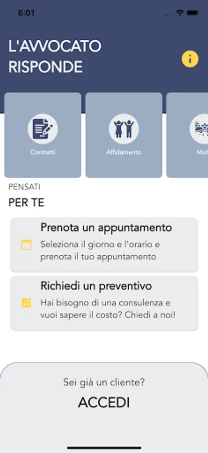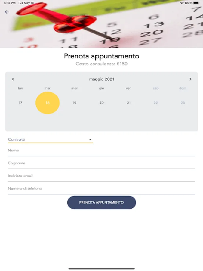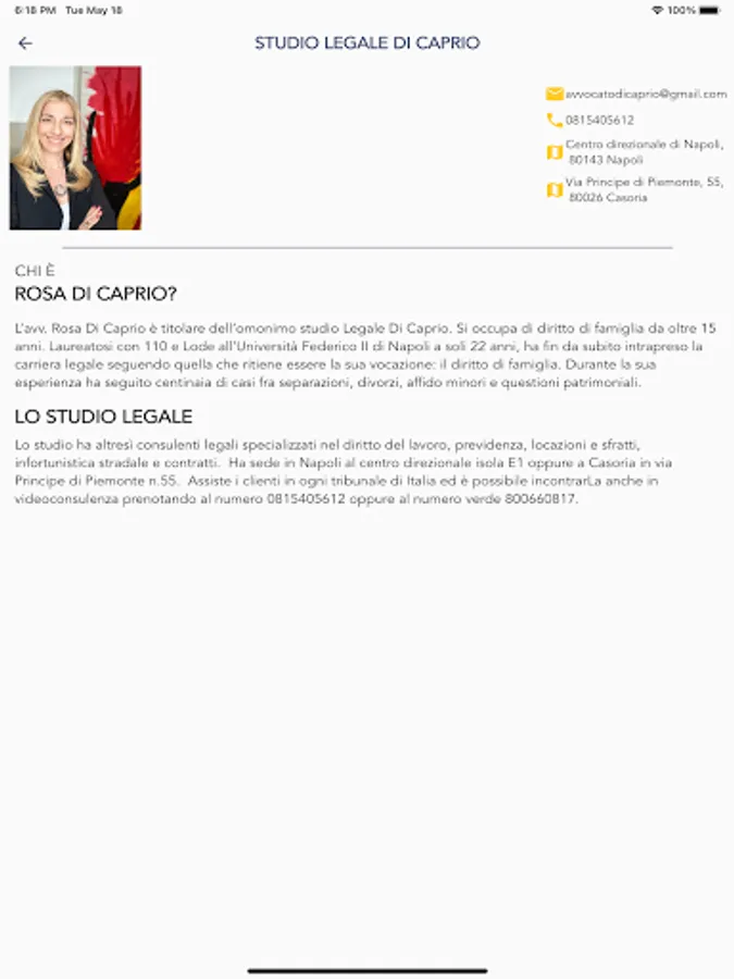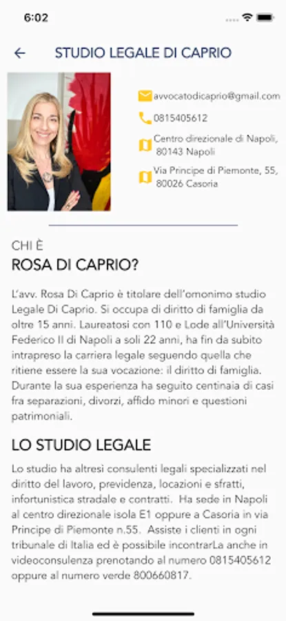 The app is owned by the lawyer Rosa DI Caprio, owner of the Di Caprio law firm of the same name. He has been in business for over 15 years and has now thought of a way to have a more direct contact with his customers.