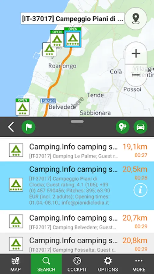The Camping by POIbase app combines the outstanding data from Camping.Info, Stellplatz.Info, and CaravanMarkt.info with our POIbase Technology: